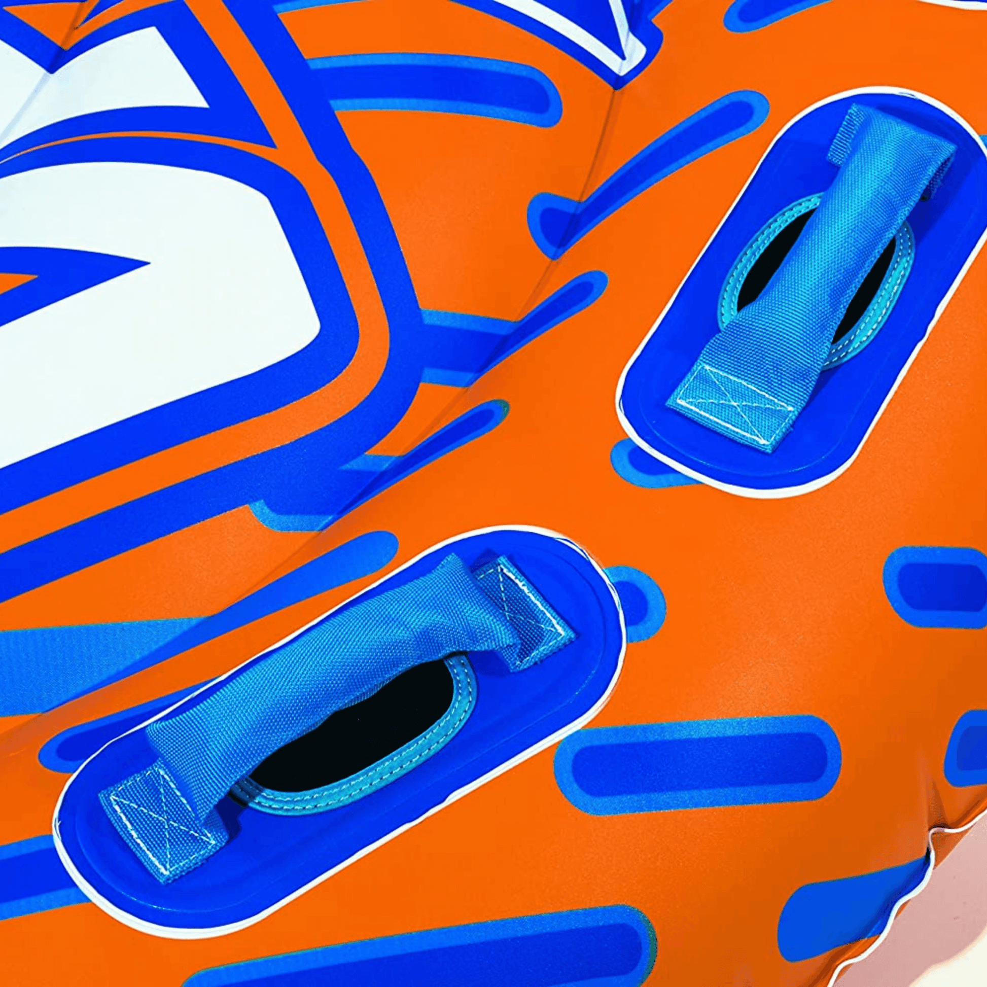 It's out of this world! Jump on the NOVA yourself, or bring two of your favorite extraterrestrials. Its tapered shape (higher in the front than the back) makes tow starts easy and comfortable. The NOVA is constructed from heavy-duty PVC, so you know it will be ready for action summer after summer. Double webbing foam handles make it easy to get a grip on the water. The NOVA inflates in no time, so you can get on the water sooner. It also deflates fast when you're ready to call it a day and head home. Includes a one-year warranty.