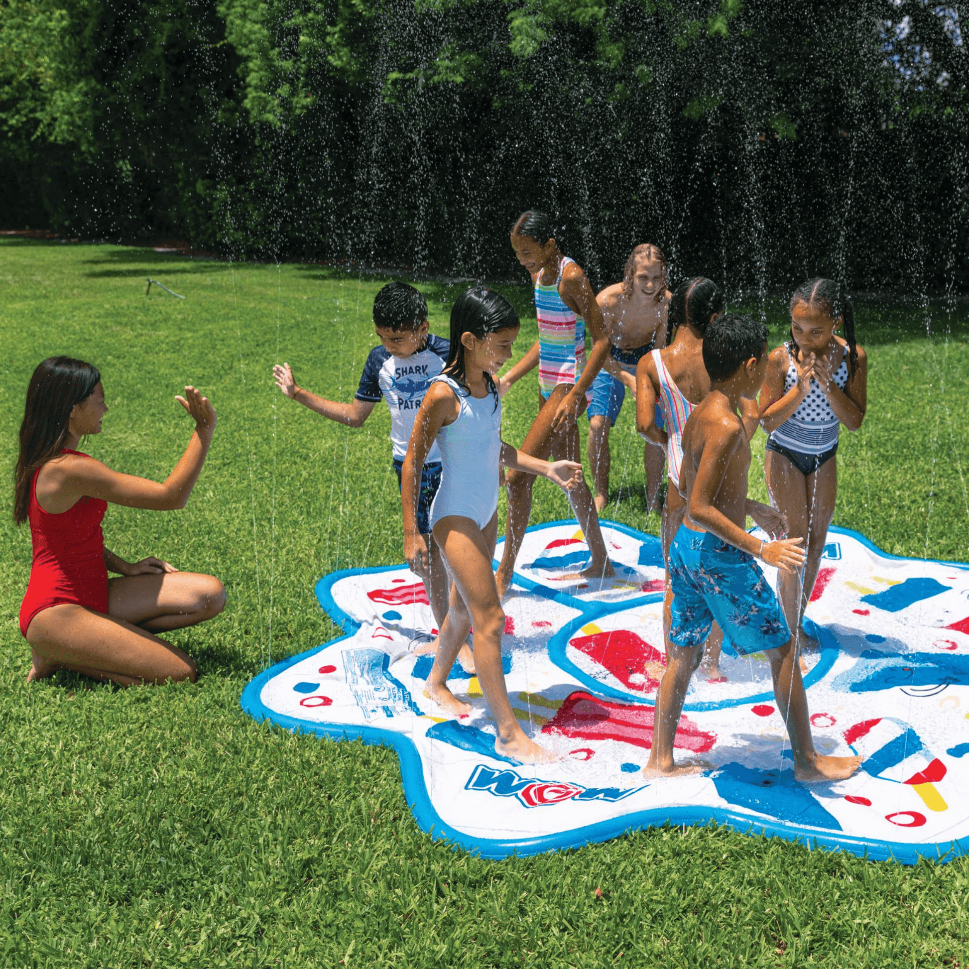 Everyone loves the Popsicle Spray Pad: a water pad, and sprinkler in one! This giant, 10-foot water toy makes it easy to cool off while having fun. The inflatable rim keeps water pooled in the base for extra splashing action. Popsicle Spray Pad also connects to a standard garden hose that sprays water every which way. The popsicle design adds a fun summer flair, and there's truly no end to the fun with this amazing backyard sprinkler experience.