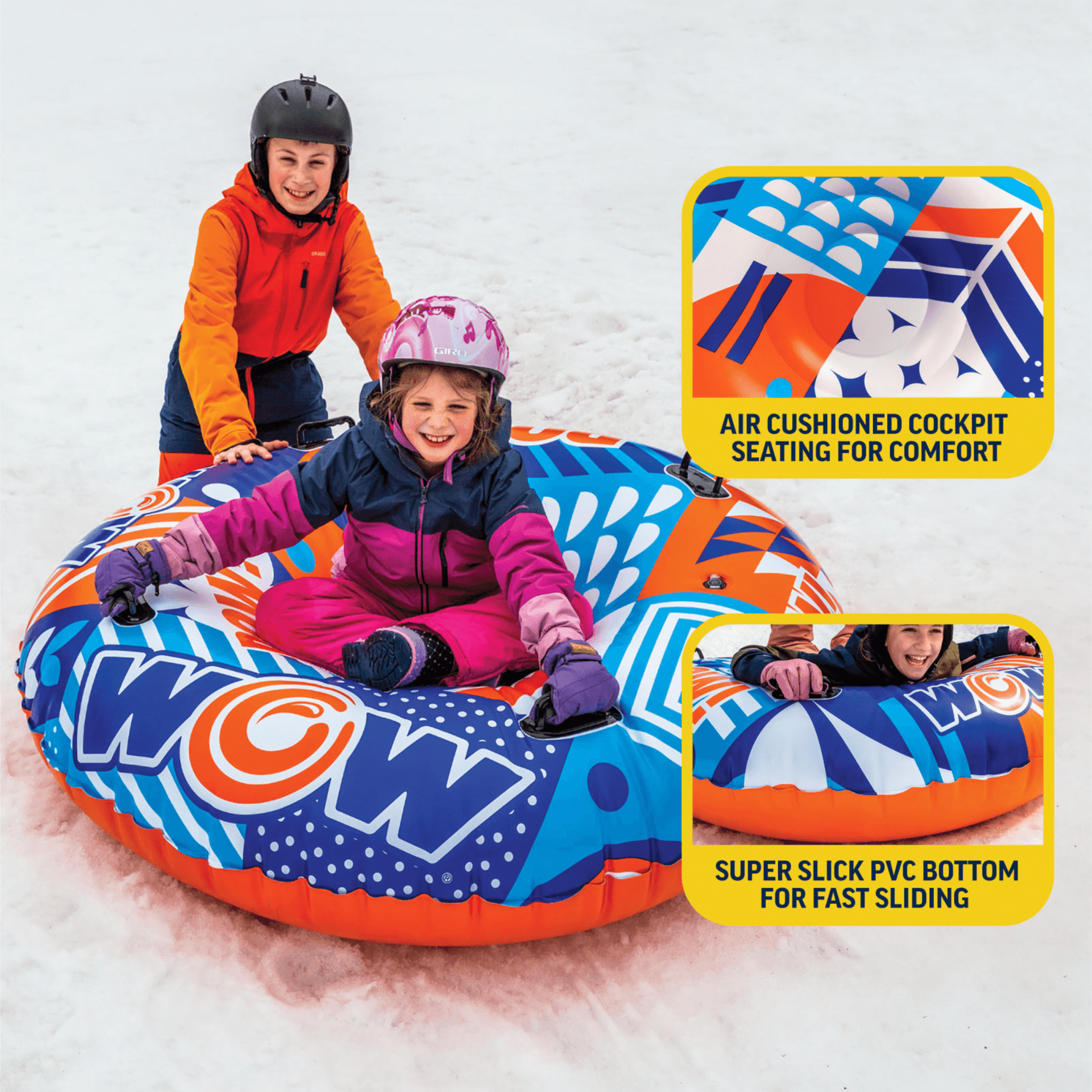 Make memories with the WOW POW! giant snow tube, the go-to winter tube for an endless thrill that fits 1-2 riders. POW! is durable and cold-resistant, thanks to heavy gauge cold crack PVC with heat-sealed seams.
