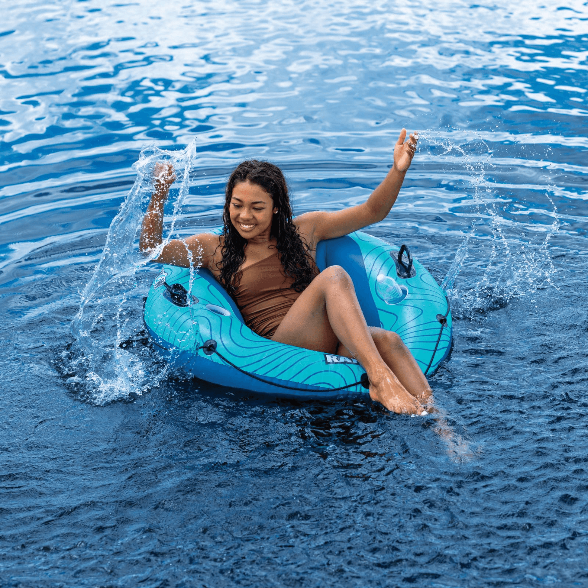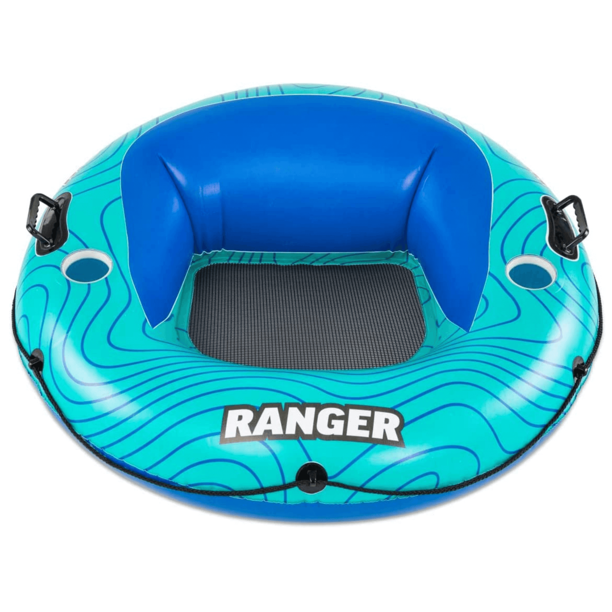 Float, glide, and relax in Ranger, a one-person inflatable river tube designed for comfort. Feel like you're on a lazy river with the comfortable backrest and smooth surface. Not to mention the two convenient drink holders, so you can take a beverage along for the ride! The mesh bottom allows you to enjoy the water beneath you, making it the best tube for rivers. There are two sturdy handles to hold on if any rapids come your way. There's also a tether rope around the perimeter of the tube for linking up with your friends. Lastly, you can easily inflate and deflate this blow-up river tube for ease anywhere you go.