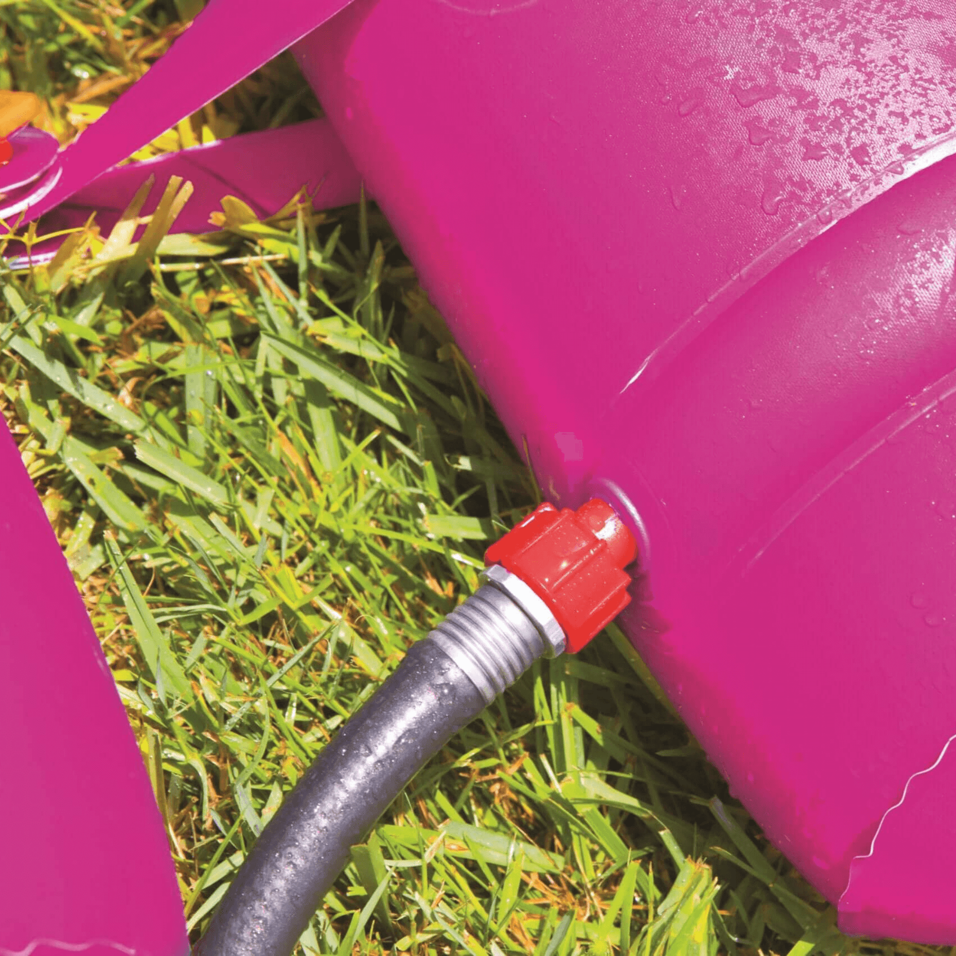 - Zig Zag spray pattern sprinkler system runs the length of the slide for awesome water coverage for great sliding
