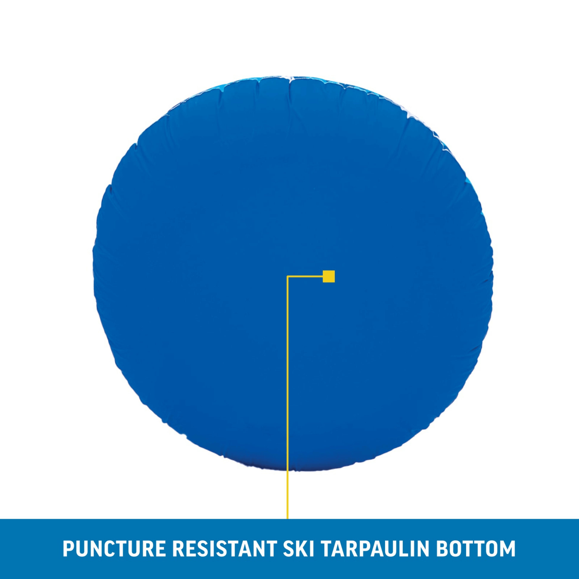 Want a tube that delivers fun in both the snow and the water? Tracer is an all-season tube that does exactly that. In summer, use Tracer as a towable tube that connects securely to your boat with a heavy-duty tow system. In winter, it's designed for downhill snow tubing that the whole family can enjoy. The heavy gauge cold crack PVC has heat-sealed seams that ensure this tube lasts for years of winter and summer fun. There are also four double webbing foam handles and knuckle guards that help you hold on tight, and a ski polish heavy-duty tarpaulin bottom for puncture resistance on either waves or snowy hills.