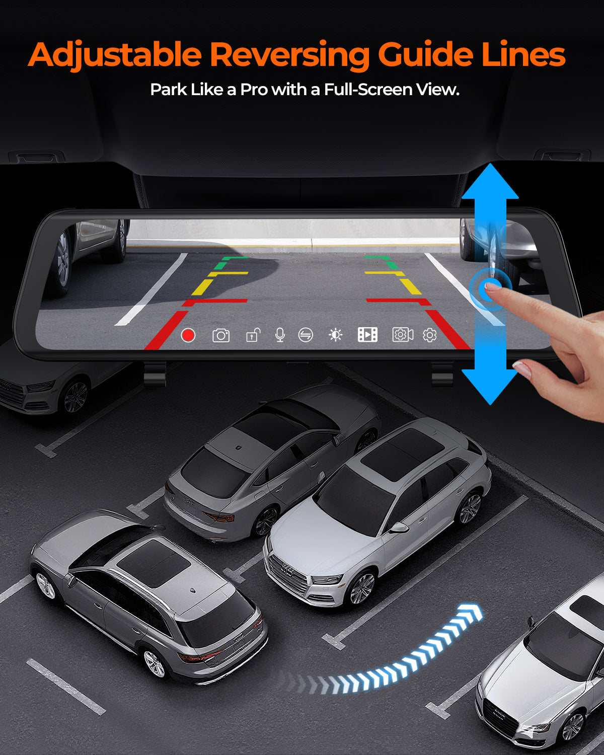 The XR10 Pro boasts a 10-inch 2.5 D curved LCD touchscreen, providing three times the viewing area of standard mirrors and responsive touch controls.