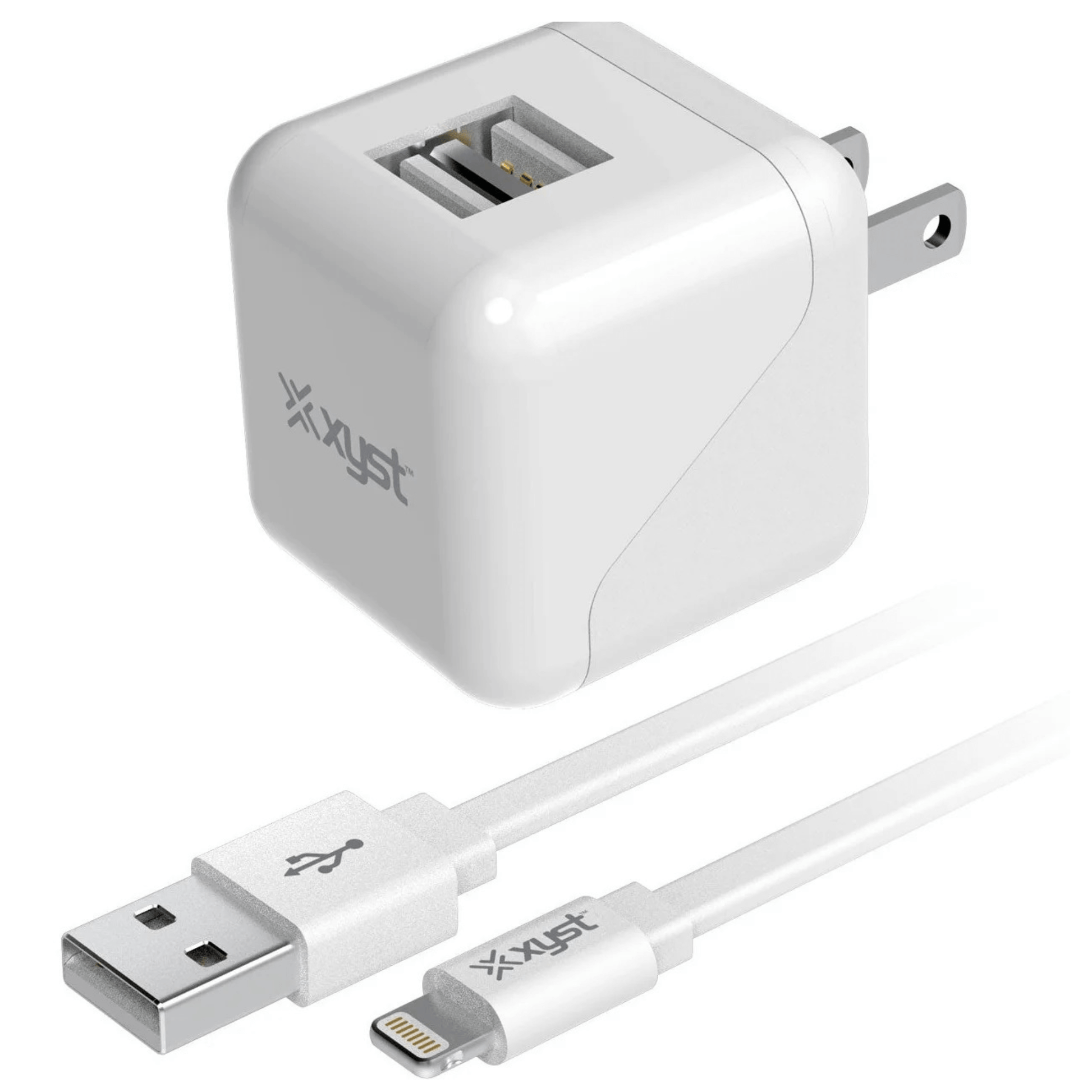 Designed for convenience and durability, the XYST Dual USB Wall Charger features a heat-resistant, anti-throw design in a compact, travel-friendly form. With a comfortable grip, it's perfect for use at home, in the office, or on the go. Its intelligent dual ports automatically detect and optimize the charging current for smartphones, tablets, and other USB-powered devices. Built with integrated injection molding technology, the charger ensures enhanced durability and reliability. The dual USB output allows for simultaneous charging of two devices, saving you time and keeping your gadgets powered. Compatible with most cell phones, tablets, MP3 players, and digital cameras, this charger also includes a flexible, tangle-free Lightning cable. Designed for long-term use, the compact Lightning connector fits most phone cases and accessories, ensuring seamless connectivity for your iPhone and other Apple devices.